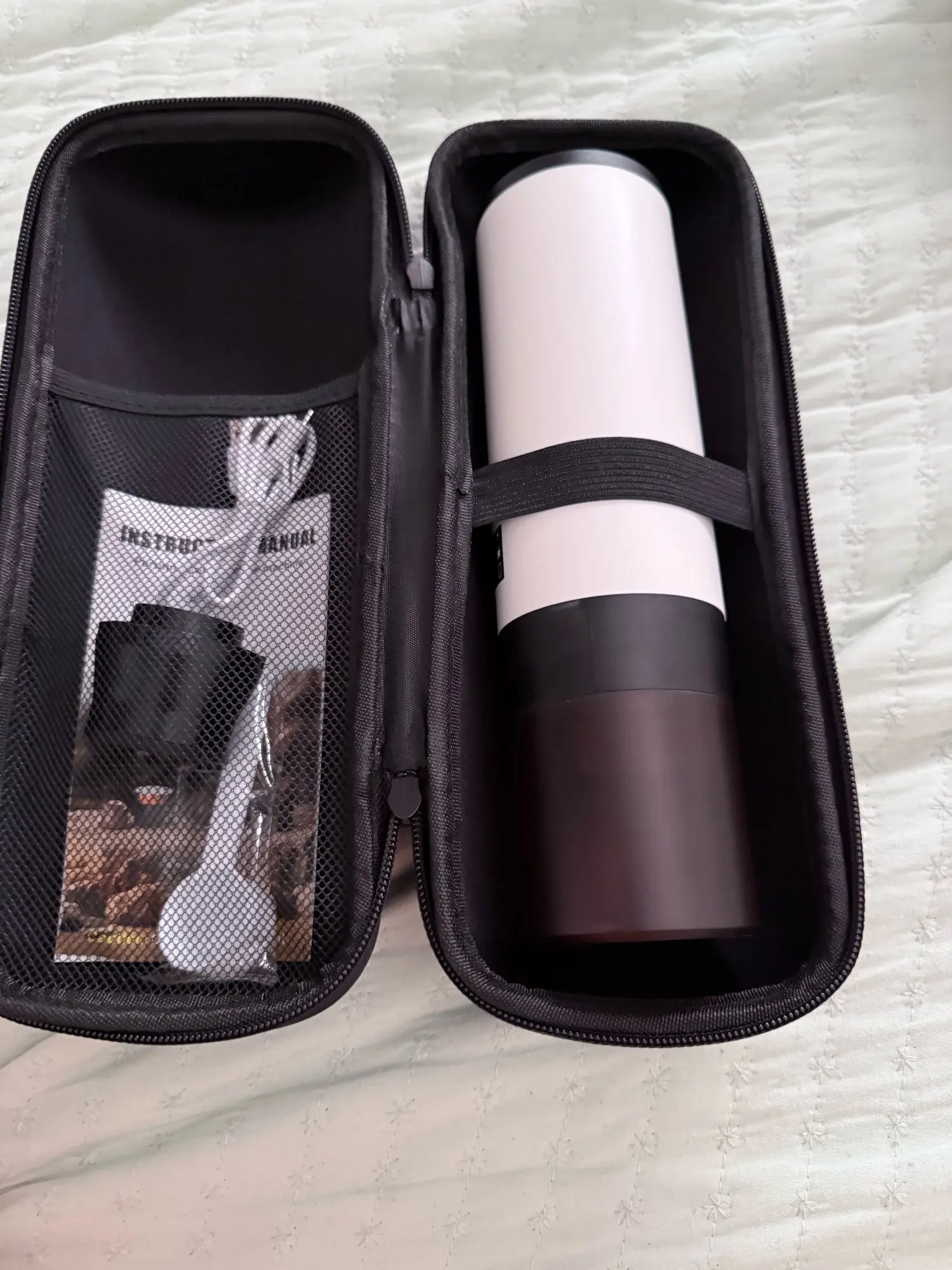 Compact yet spacious, it neatly holds your coffee machine and accessories so you can brew with confidence anywhere.